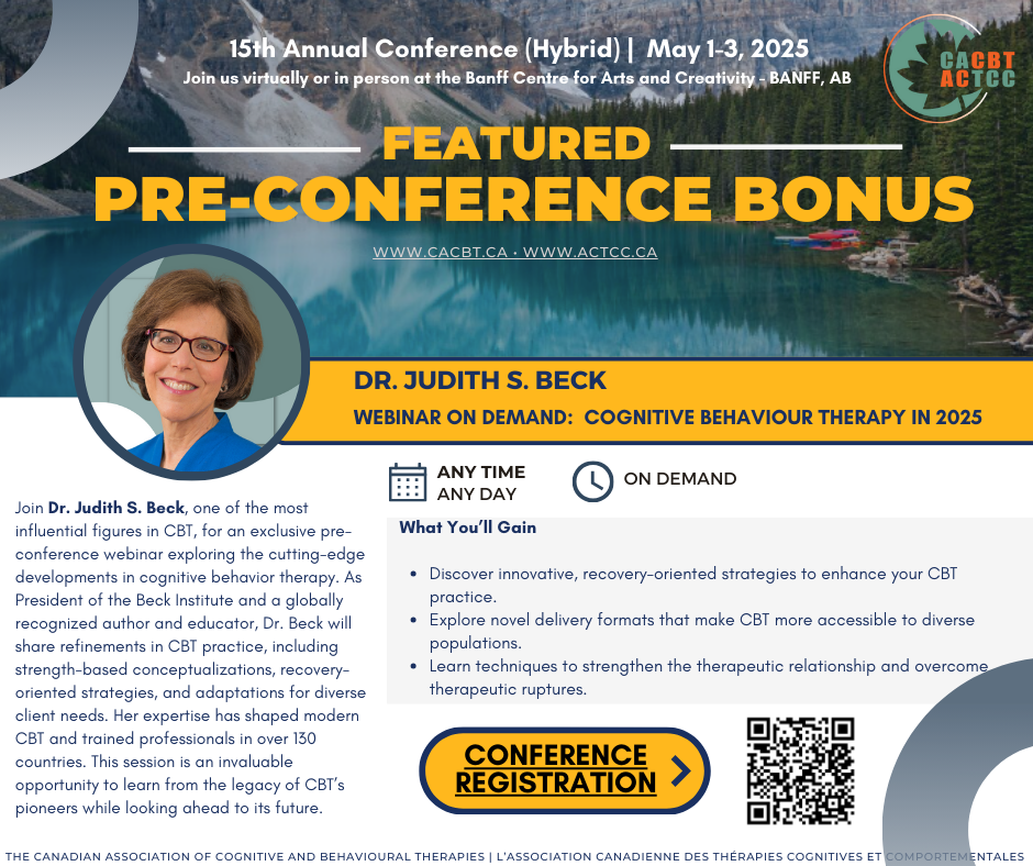 As a special bonus, we are thrilled to include a pre-recorded talk from Dr. Judith Beck on “Cognitive Behaviour Therapy in 2025”, offering timeless insights from one of the field’s most influential voices.